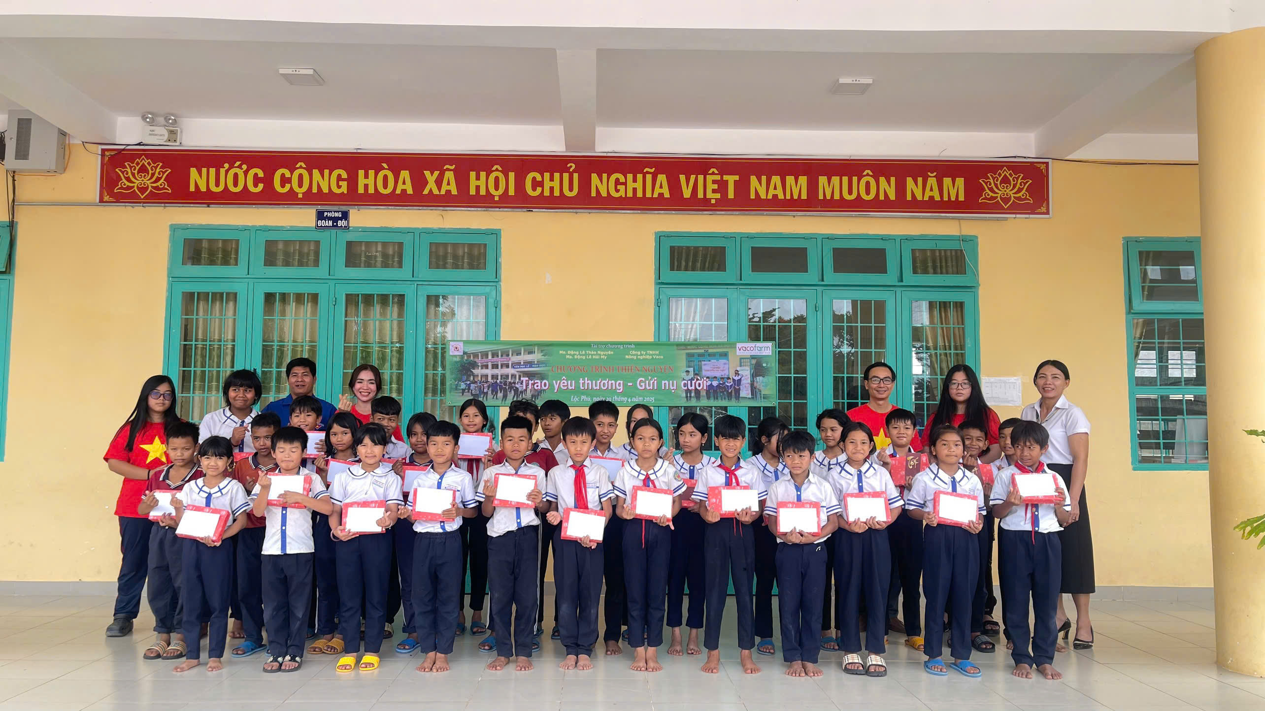 Chương trình thiện nguyện “Trao yêu thương – Gửi nụ cười” đã trao tặng 50 phần quà gồm tập trắng và tiền mặt đến các em học sinh nghèo hiếu học tại Trường Tiểu học – Trung học cơ sở Lương Thế Vinh, tiếp thêm động lực để các em vững bước trên con đường tri thức.